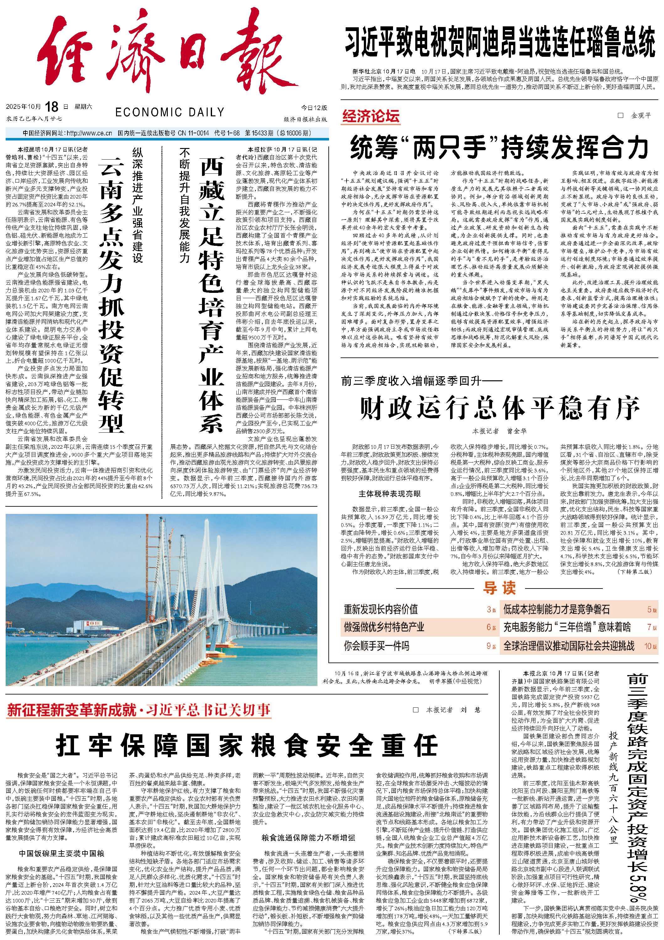 本报拉萨报10月17日报道(记者戴玲)西藏自治区第十次代表大会以来,特色农牧业、清洁能源、文化旅游、轻工等产业发展。现代产业体系初步建立,西藏自主发展能力不断增强。西藏把青稞作为推动产业振兴的重要产业之一,不断加强政策引导和项目支持。西藏自治区农业农村厅厅长张惠明表示,西藏建成了全国首个青稞产业技术体系,种植了藏蓝系列、喜马拉雅系列等78个优质品种;开发4大类80余种青稞产品,培育市级以上龙头企业38家。那曲市色尼区达嘎铺村公司在西藏建设了全球高度最高、容量最大的独立电网式储能项目——西藏开头色尼区达嘎普独立电网式储能电站。西藏开头那曲水电公司副总经理王伟斌表示,自去年底安装以来,截至今年9月中旬,累计并网电量已超过9500万千瓦时。近年来,西藏围绕发展清洁能源产业,加快国家清洁能源基地建设。按照“一基地、两示范”的新能源发展格局,加强清洁能源产业招商引资和本地服务,组织建设清洁能源产业园。去年8月,山南市建成落户西藏首个清洁能源装备产业园——中车山南清洁能源y 装备工业园。中车株洲所西藏分公司营销部部长陈戈介绍,产业园运营以来,已实现工业产品销售额超过2300万元。文化旅游产业也呈现出新兴之势。西藏深度挖掘文化资源,将自然风光与文化相结合,推出更高品质的旅游线路和产品;不断扩大对外交流合作,推动西藏旅游业从旅游向旅游、文化旅游转变,从壮观旅游向沉浸式休闲体验转变,从“门票经济”向产业经济转变。数据显示,今年前三季度,西藏接待国内外游客6370.73万人次,同比增长11.21%;旅游总支出736.73亿元,同比增长9.87%。