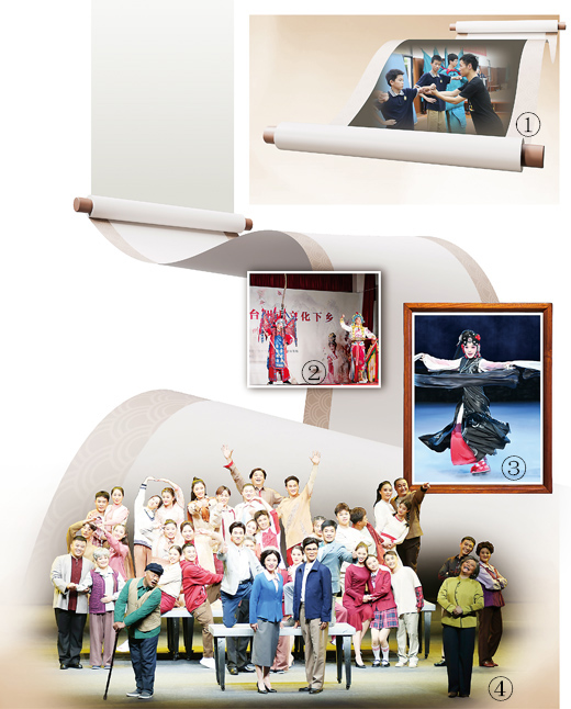 图①:剧团将戏剧带到校园。图②:剧团送剧下乡。图③:国家大剧院上演的《我的台州乱弹——古典折子专场》...